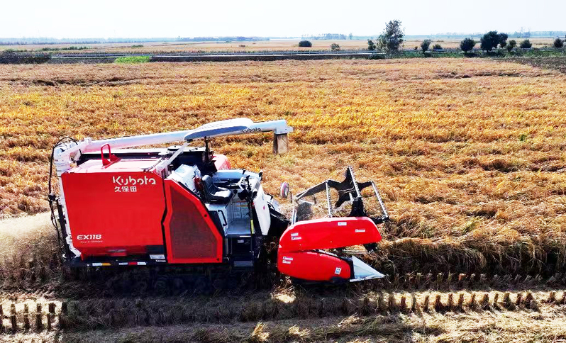 11月3日,蘇墾農(nóng)發(fā)新洋分公司組織收割機(jī)械搶收優(yōu)質(zhì)水稻,確保秋糧顆粒歸倉。